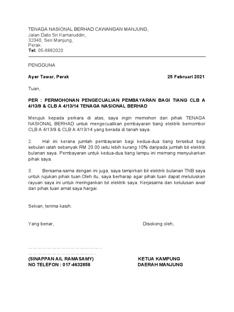 Contoh Surat Alih Tiang Elektrik Tnb Pdf